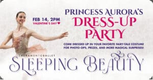 Celebrate make-believe, romance, and theatrical magic at Princess Aurora’s Dress Up Party, held during the 2pm performance on February 14 of Sleeping Beauty. For this enchanting Valentine’s Day matinee, children and adults alike are invited to arrive in their favorite fairy-tale attire and become part of the magic. Available exclusively at this performance, guests will enjoy special photo opportunities, delightful prizes, and the rare chance to meet dancers from the production—beautifully costumed and fresh from the stage. Best of all, this magical celebration is included with the price of admission. The festivities unfold alongside a breathtaking performance of Sleeping Beauty, featuring exquisite dancing from Sacramento Ballet’s international roster of professional artists and Tchaikovsky’s riveting score performed live by the Sacramento Philharmonic & Opera.